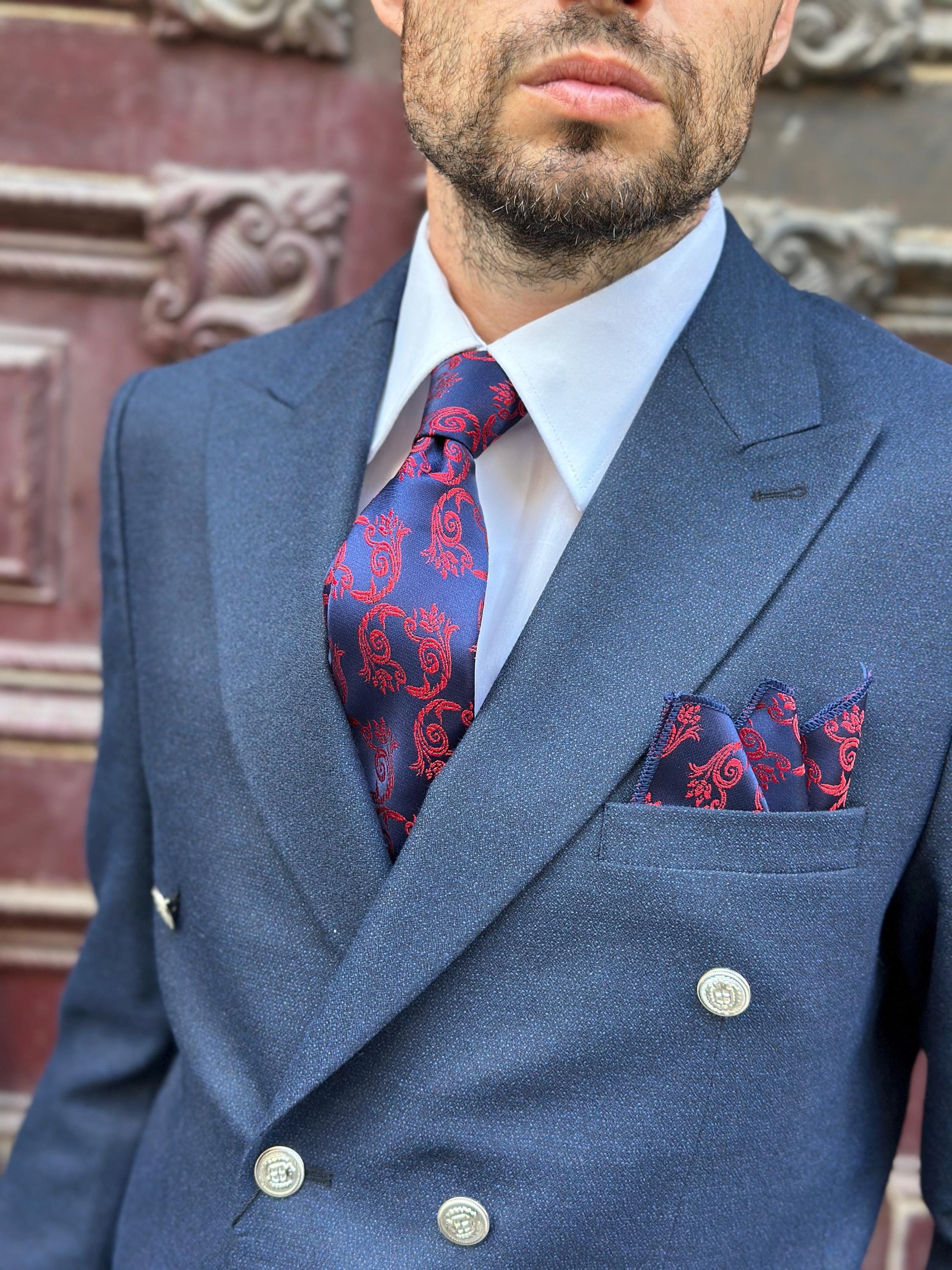 Step into a realm of subtle grandeur with our Artisan Silk Tie & Pocket Square Set, featuring an heirloom Damask motif. This is more than an accessory; it‘s a testament to refined taste and enduring style. Each set includes a meticulously woven 7cm wide tie and a perfectly proportioned 20cm x 20cm pocket square, harmonizing intricate patterns with luxurious silk blend fabric. Available in four unique color palettes—each exuding its own distinct charm—these sets offer a sophisticated and lasting addition to any discerning wardrobe. Crafted with exceptional skill and the finest silk blend fabrics, this set transcends fleeting trends, becoming a cherished heirloom for generations to appreciate.