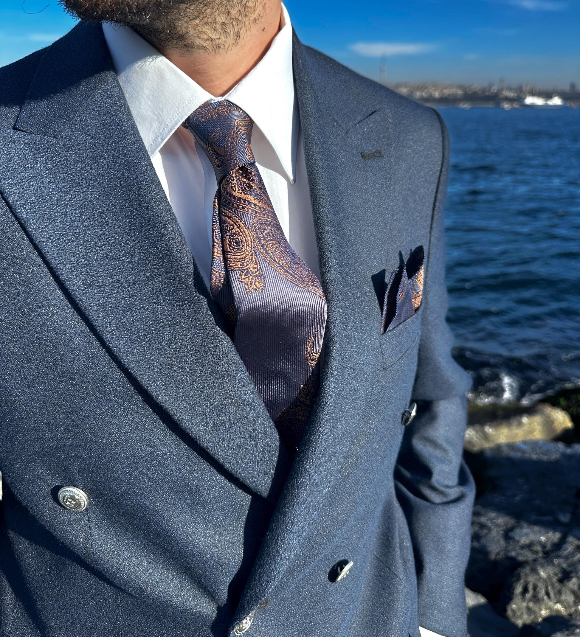 👔💼 For Business Meetings: "Stand out at your next business meeting with the copper paisley on cosmic gray tie set. This sophisticated color combination is ideal for making a lasting impression."