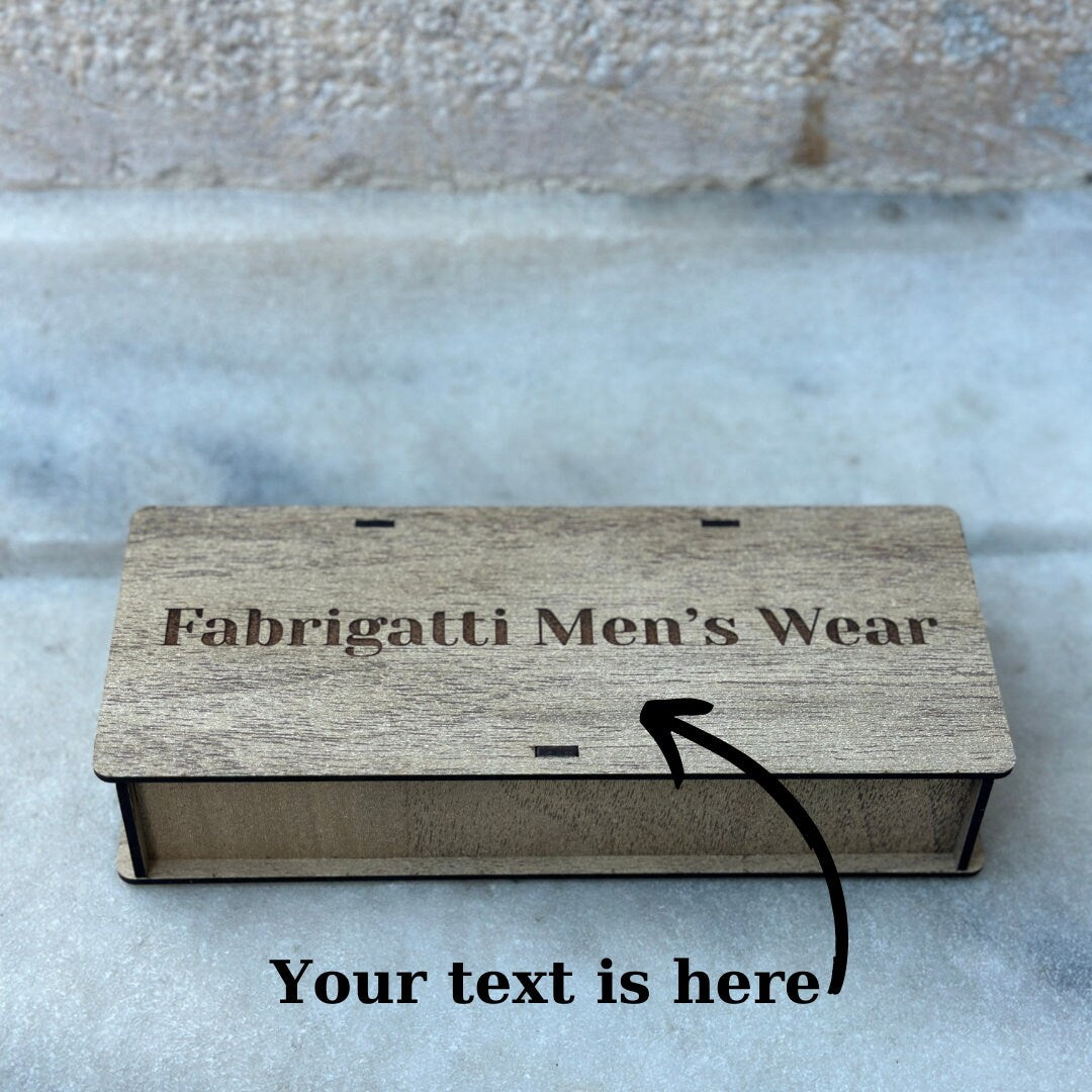 Your orders can now be more meaningful and personalized with our boxes produced from premium quality wood. We write the text you want on our customizable tree boxes, which are specially designed for all our bow ties and ties, using the laser engraving method. Let‘s engrave your own name, company name or logo, the names of the people you want to gift, or the words or groups of words that you love and have adopted as your motto, on our wooden box!